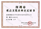 深圳市重點(diǎn)文化企業(yè)認定證書(shū)